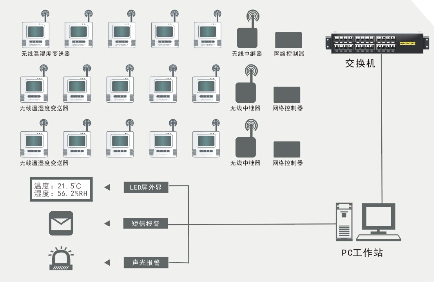 典型應(yīng)用 冰箱溫度監(jiān)控系統(tǒng)主要實(shí)現(xiàn)24小時(shí)無人值守下的監(jiān)控方案,主要針對:醫(yī)院、疾控中心、血庫、實(shí)驗(yàn)室、種子庫、培養(yǎng)箱、生物制藥等領(lǐng)域下的多點(diǎn)冰箱的同時(shí)集中監(jiān)控。 冰箱溫度監(jiān)控系統(tǒng)方案1-短距離局域網(wǎng)無線溫度監(jiān)控系統(tǒng) ![]() ![]()